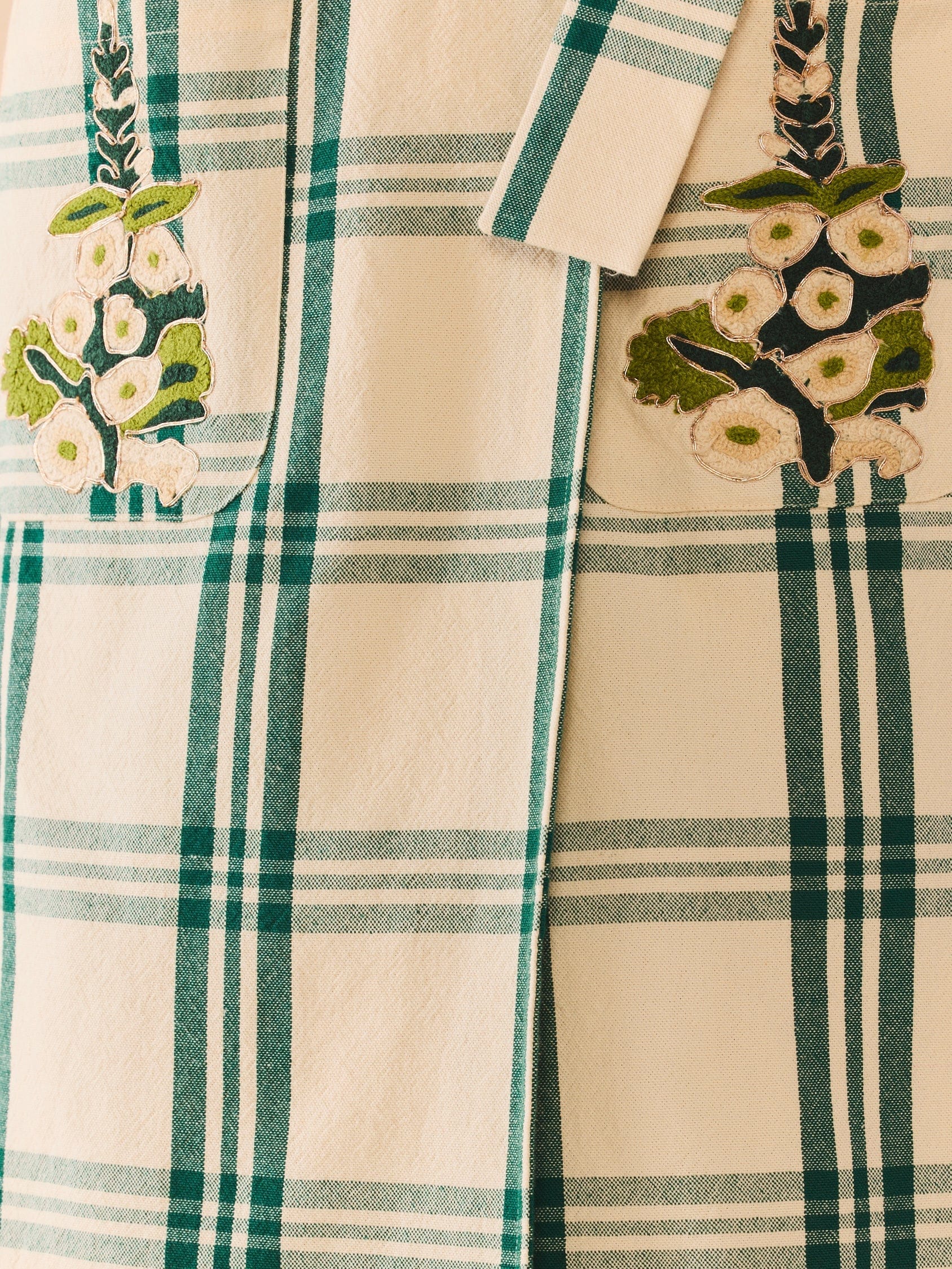 Added embroidered florals (created by Larsen McDowell), because life’s too short for boring outerwear. Throw it on with jeans for “just ran out for a latte” energy or belt it layered over top your favorite dress from the collection.
