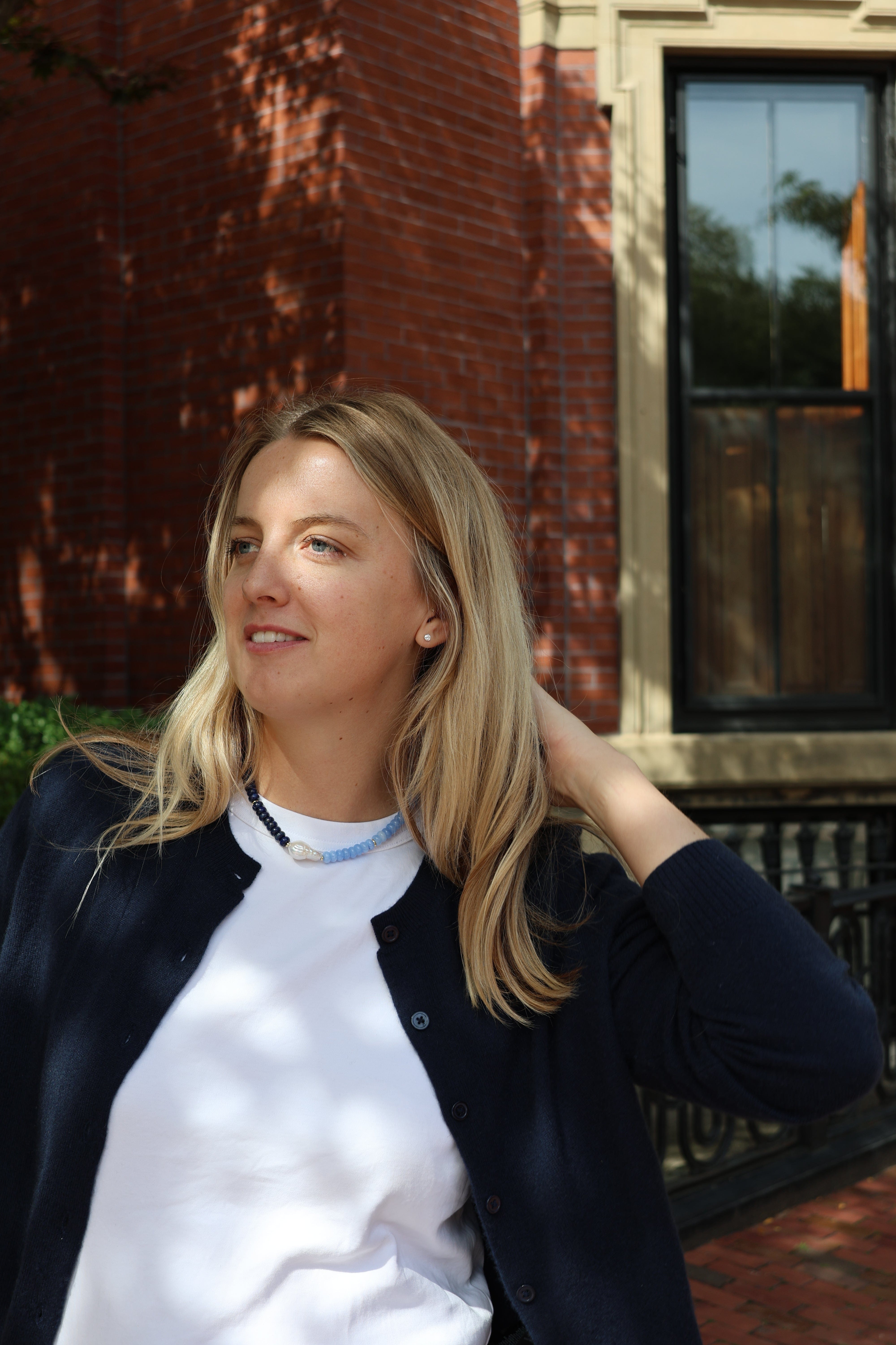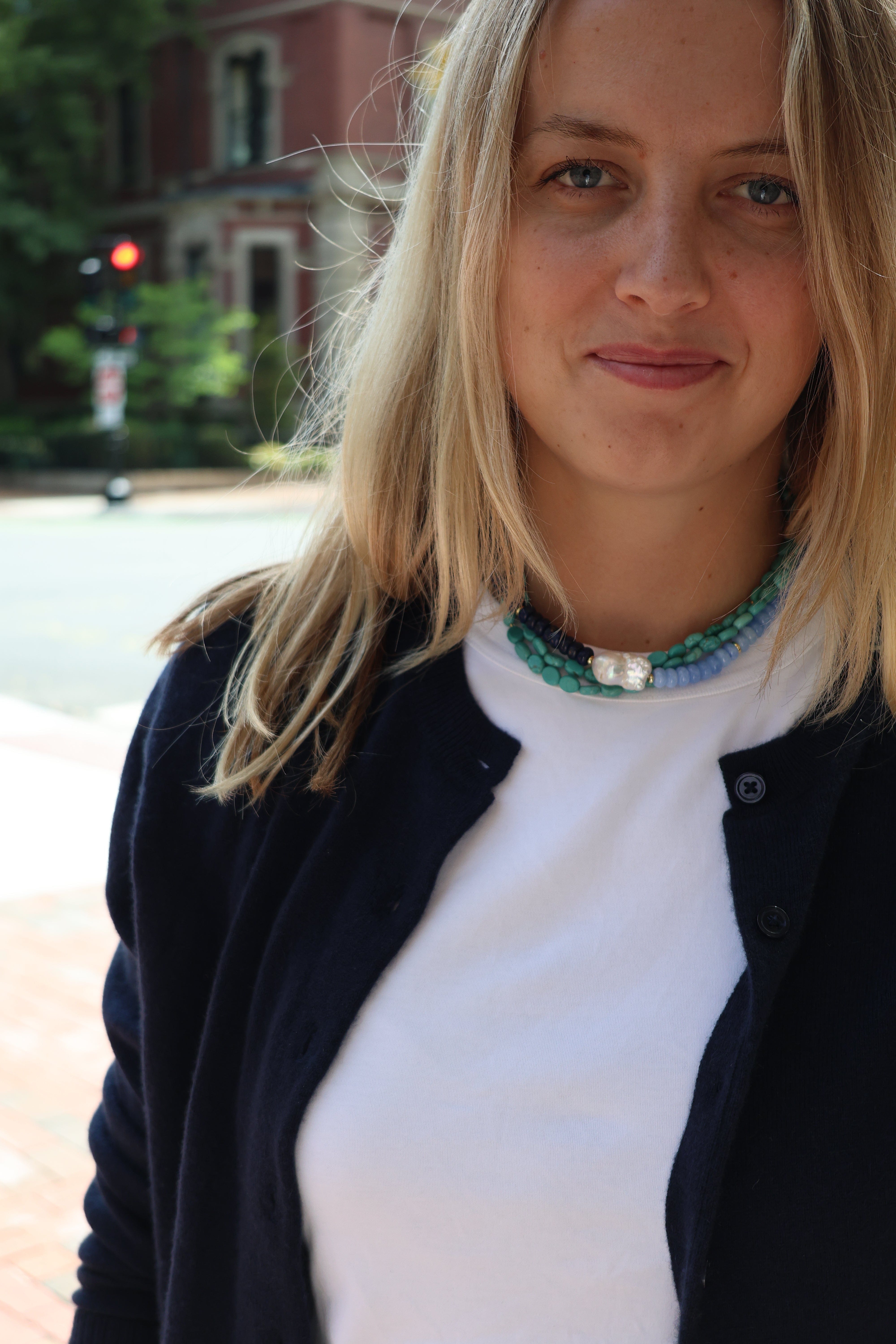 The original Loulu Emily… spruced up a bit! Featuring Lapis Lazuli & Kyanite stones with our signature center baroque freshwater pearl. Coastal & classic.