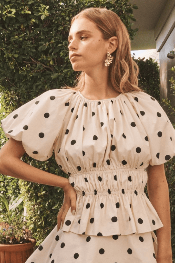 - Balloon sleeves with hidden elasticized cuffs